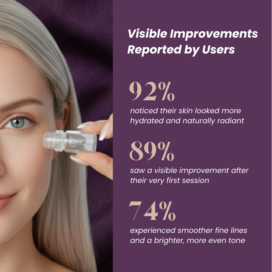 Controlled micro stimulation has been shown to activate fibroblasts and collagen synthesis through wound-healing pathways, while enhanced ingredient penetration supports cellular repair and matrix regeneration. Together, these mechanisms outperform surface-level skincare approaches.