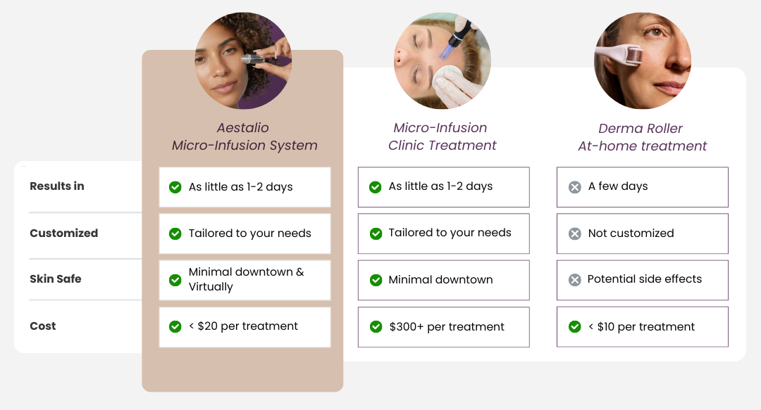 The Aestalio Micro Infusion System activates this biological pathway directly, without layering products, injections, or clinic visits. Where traditional skincare stops at the barrier, micro infusion works with skin biology to deliver real results.